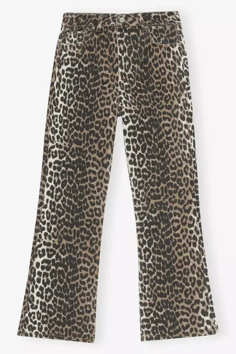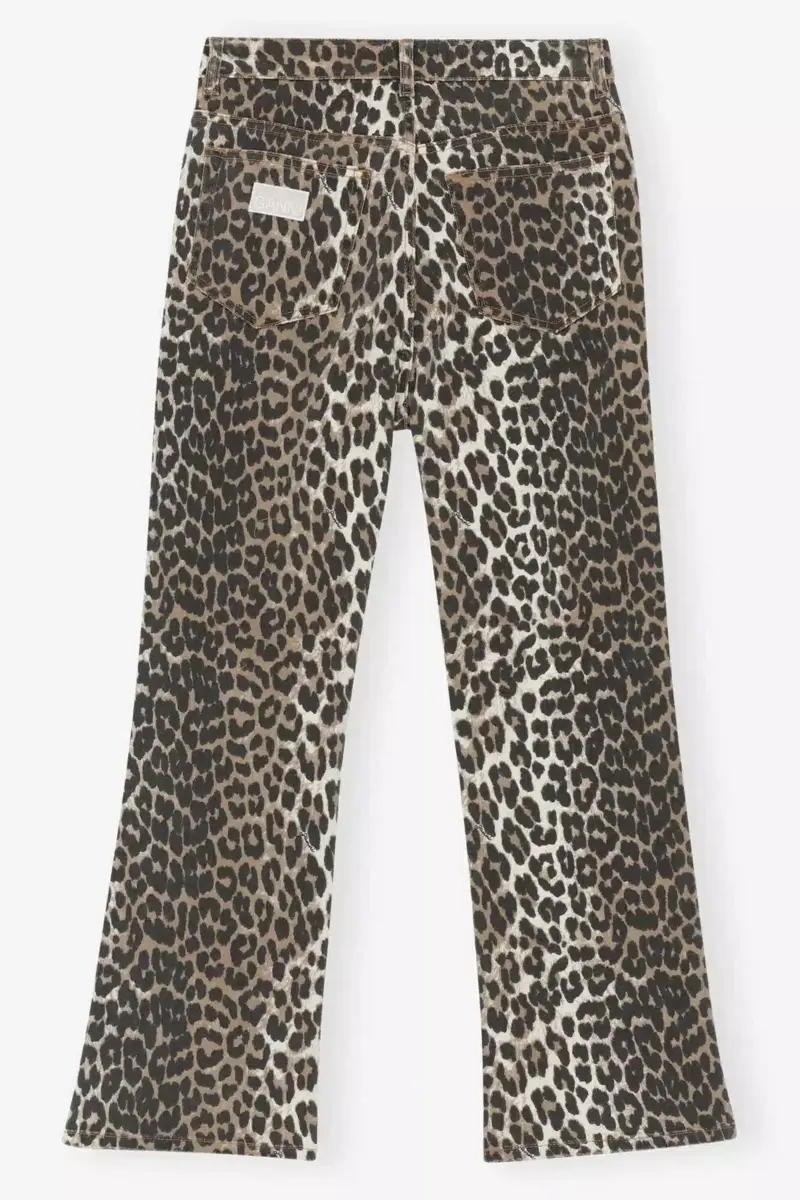 These jeans in leopard printed denim feature a zip and button closure, 5 pockets, belt loops and a GANNI logo at the back pocket.