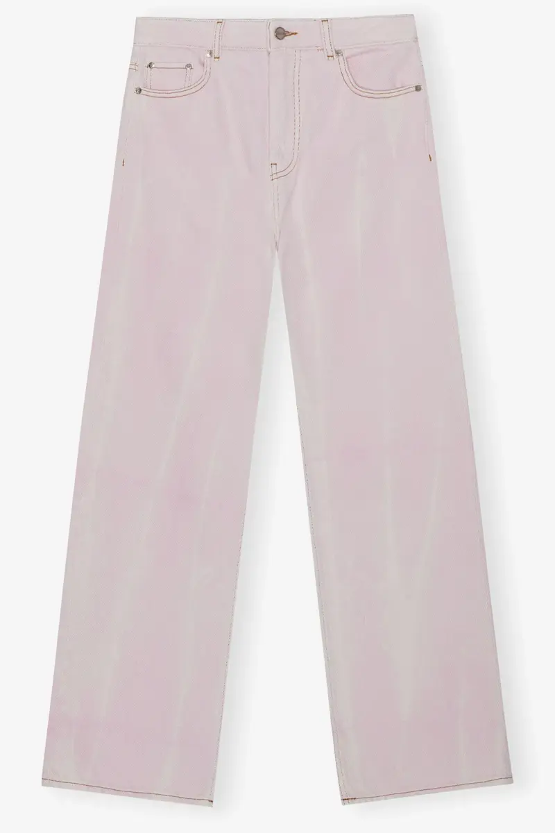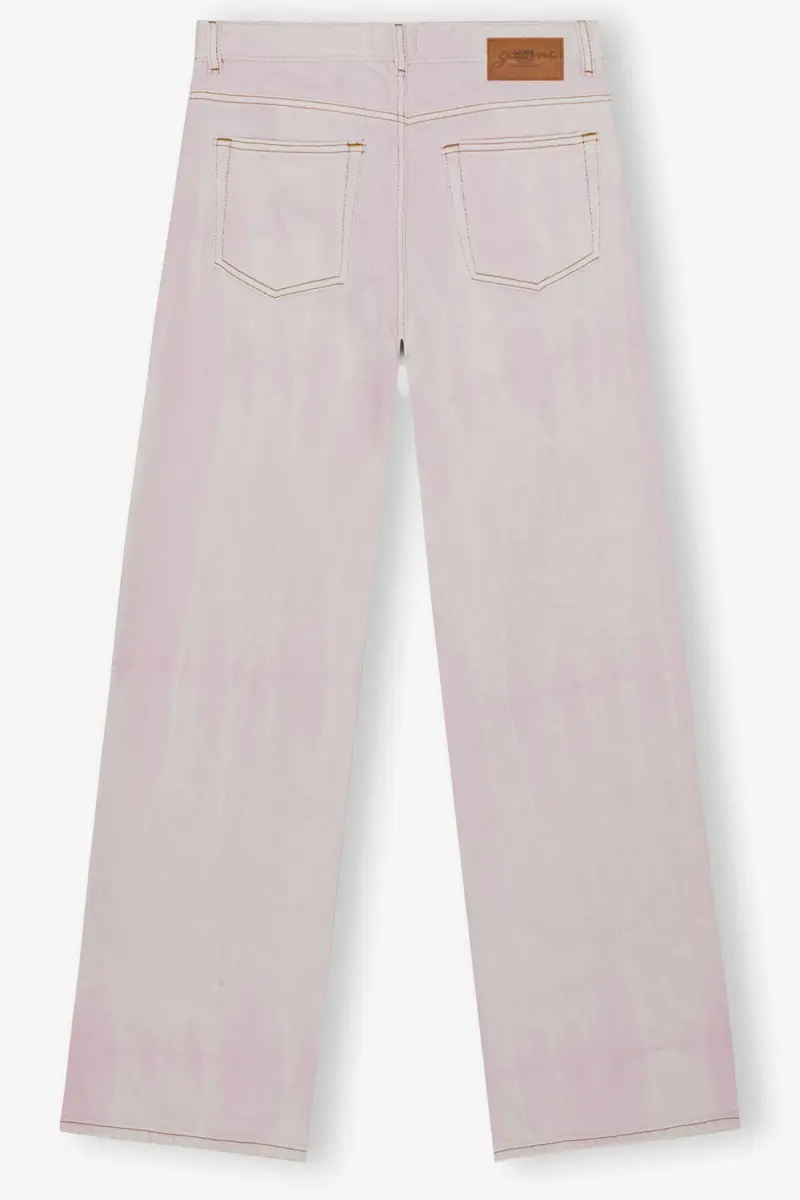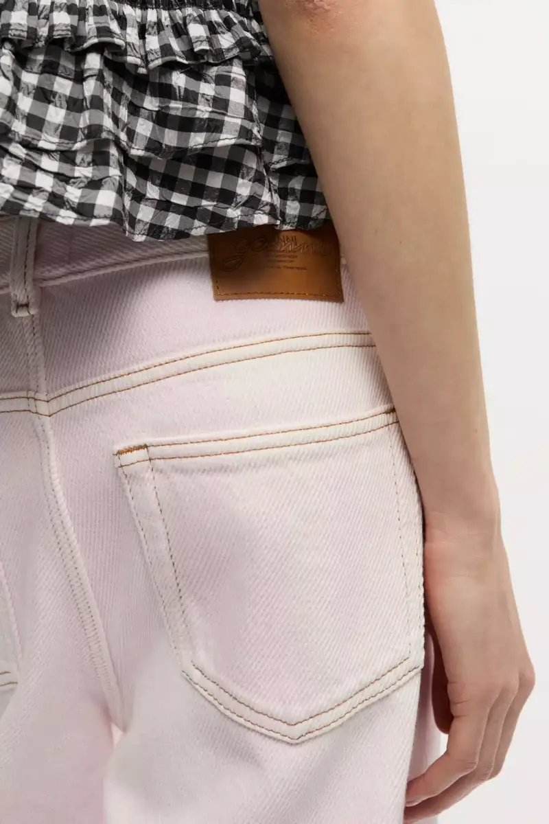 These jeans feature a pink wash, button and zip closure, 5 pockets and GANNI logo patch on back pocket.